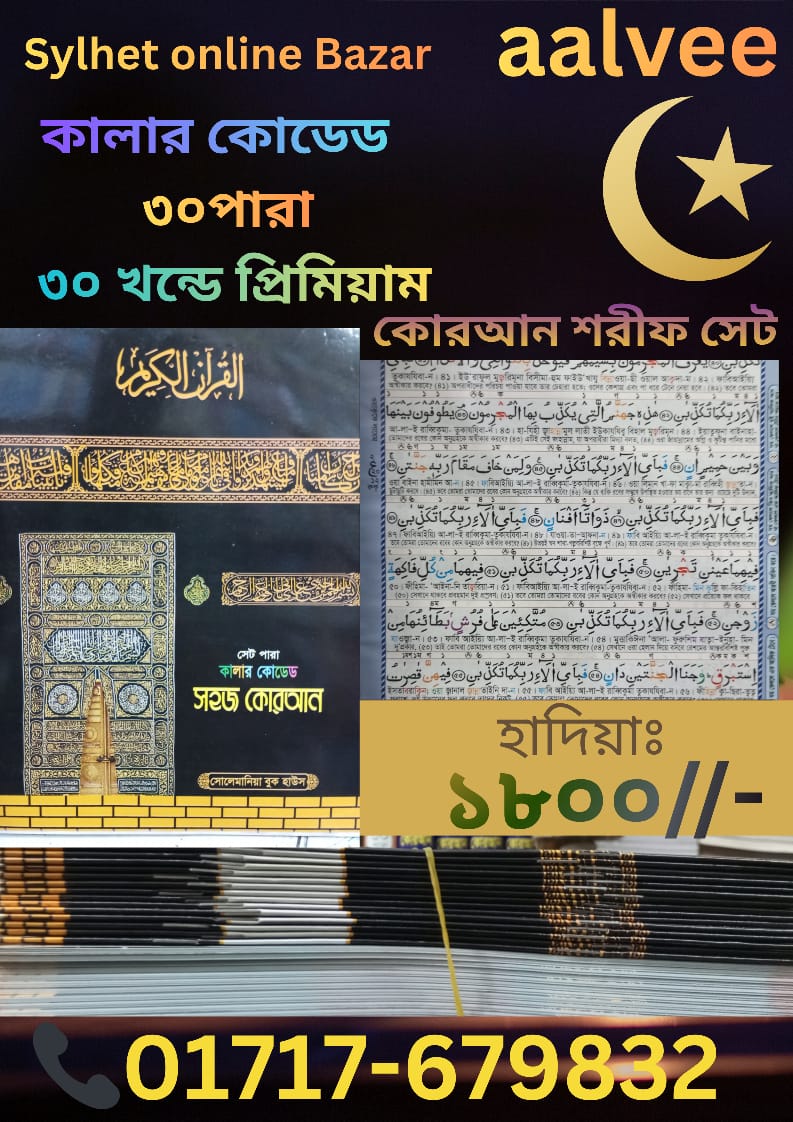 Buy 30 Volumes 30 Para Qur’an Sharif Set (Color Coded) online. Includes Arabic text, Bangla pronunciation, and Bangla meaning. Premium paper, durable binding, easy-to-read design. Ideal for students, Hifz, homes, mosques, and gifting.